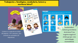 Te presentamos el cuadernillo 3: LETRA P, que cuenta con un material imprimible (PDF) para el estudiante y un PPT para presentar cada actividad de forma presencial o en terapia online. Considera actividades de: presentación del sonido y la letra, conciencia fonológica (, reconocimiento de sonido inicial, discriminación del sonido en sílaba medial y final, análisis fonémico y síntesis fonémica) vocabulario, lectura y escritura de palabras. ¿Qué esperas para utilizar un material creado por fonoaudióloga para potenciar el desarrollo de precursores de la lectoescritura y la decodificación?